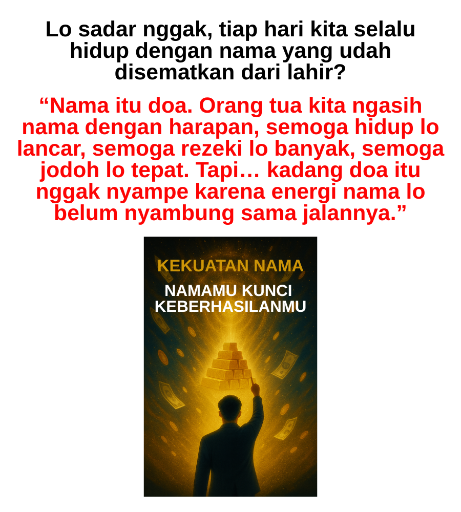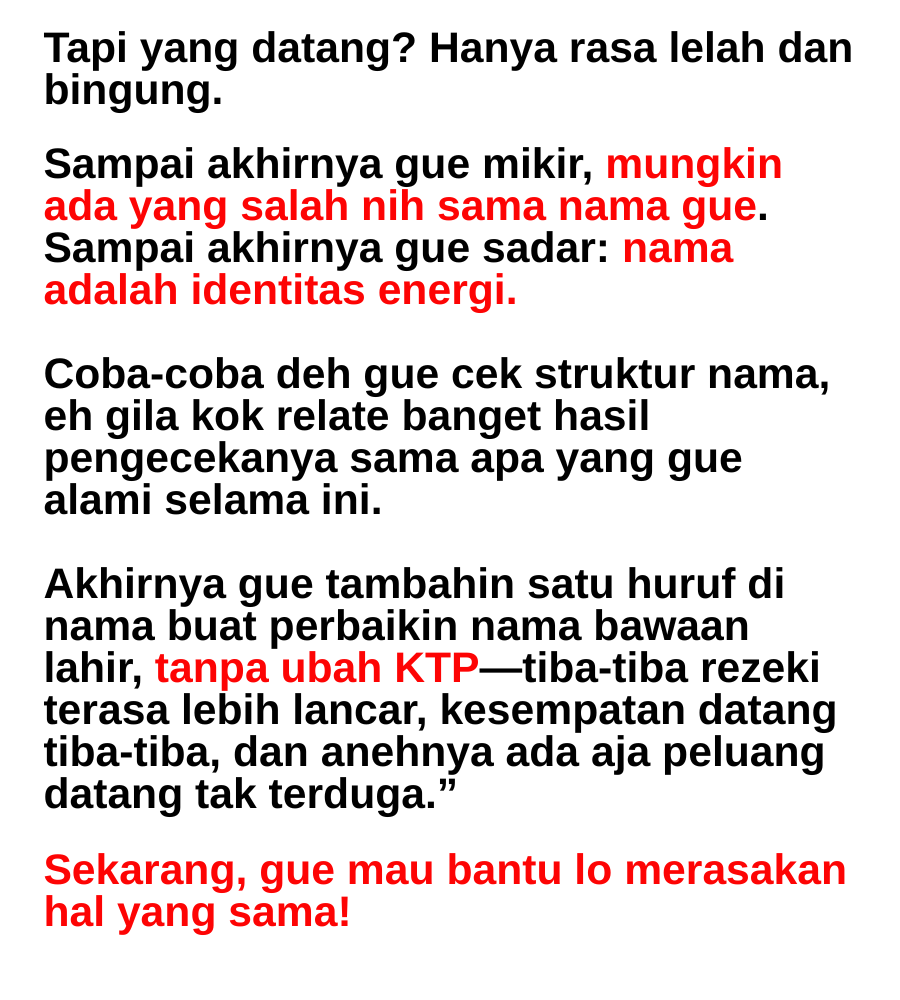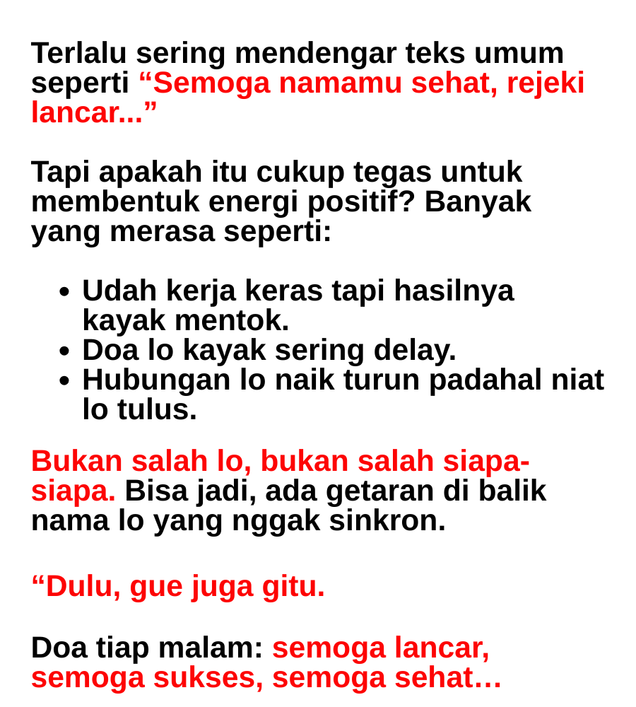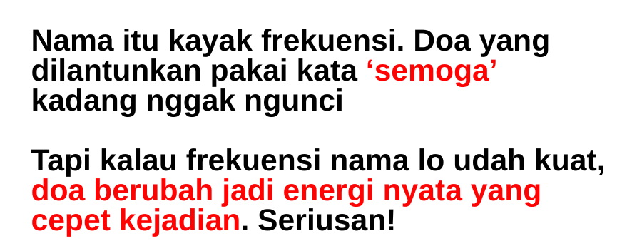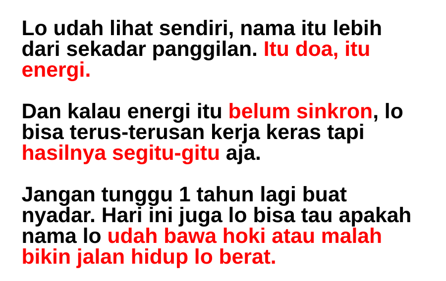 Nggak, lo cuma nambah satu kata buat harmonisasi energi. Itupun kalau emang nama lo perlu perbaikan. Kalau engga perlu perbaikan, ya gasspoll aja