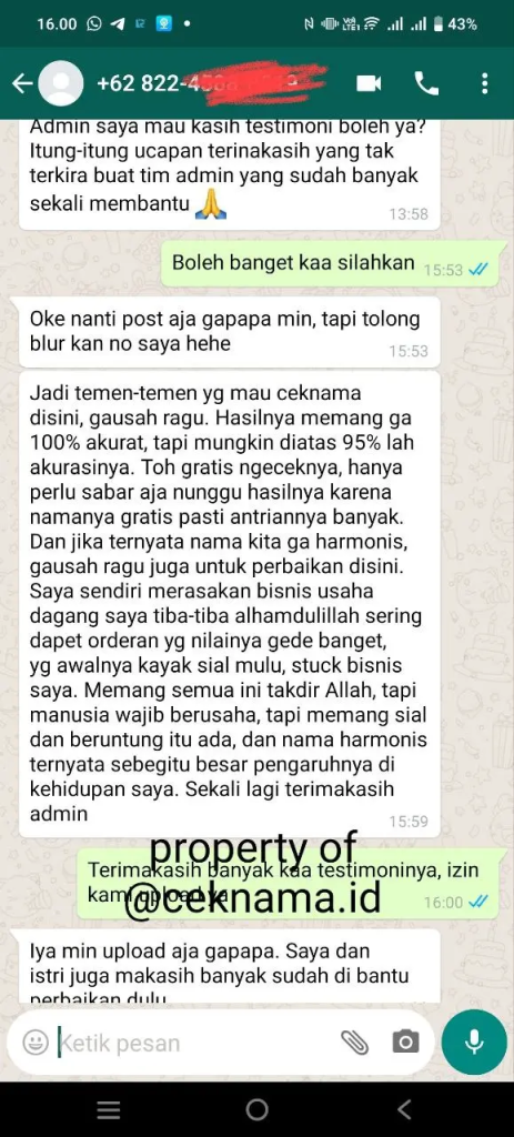 Kalau cuman pengecekan nama, Maksimal 1×24 jam via WhatsApp.  Kalau perbaikan nama biasanya 5-7 hari an tergantung antriannya. Gabisa diburu-buru soalnya karena nama sakral, ga berani gue kasih hasil perbaikan yang asal-asalan.